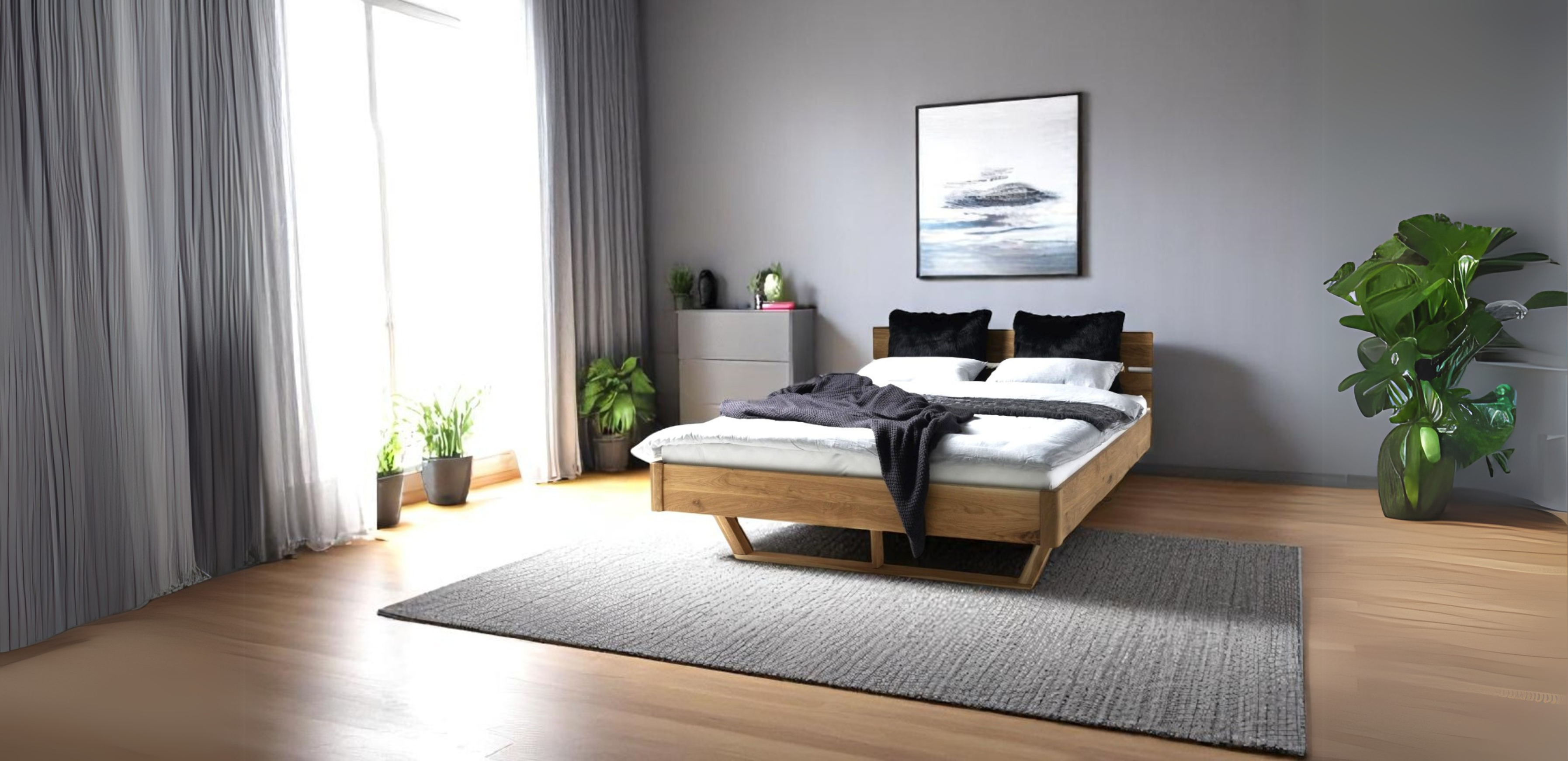 Bett SchlafGut Wildeiche massiv mit Holzkopfteil