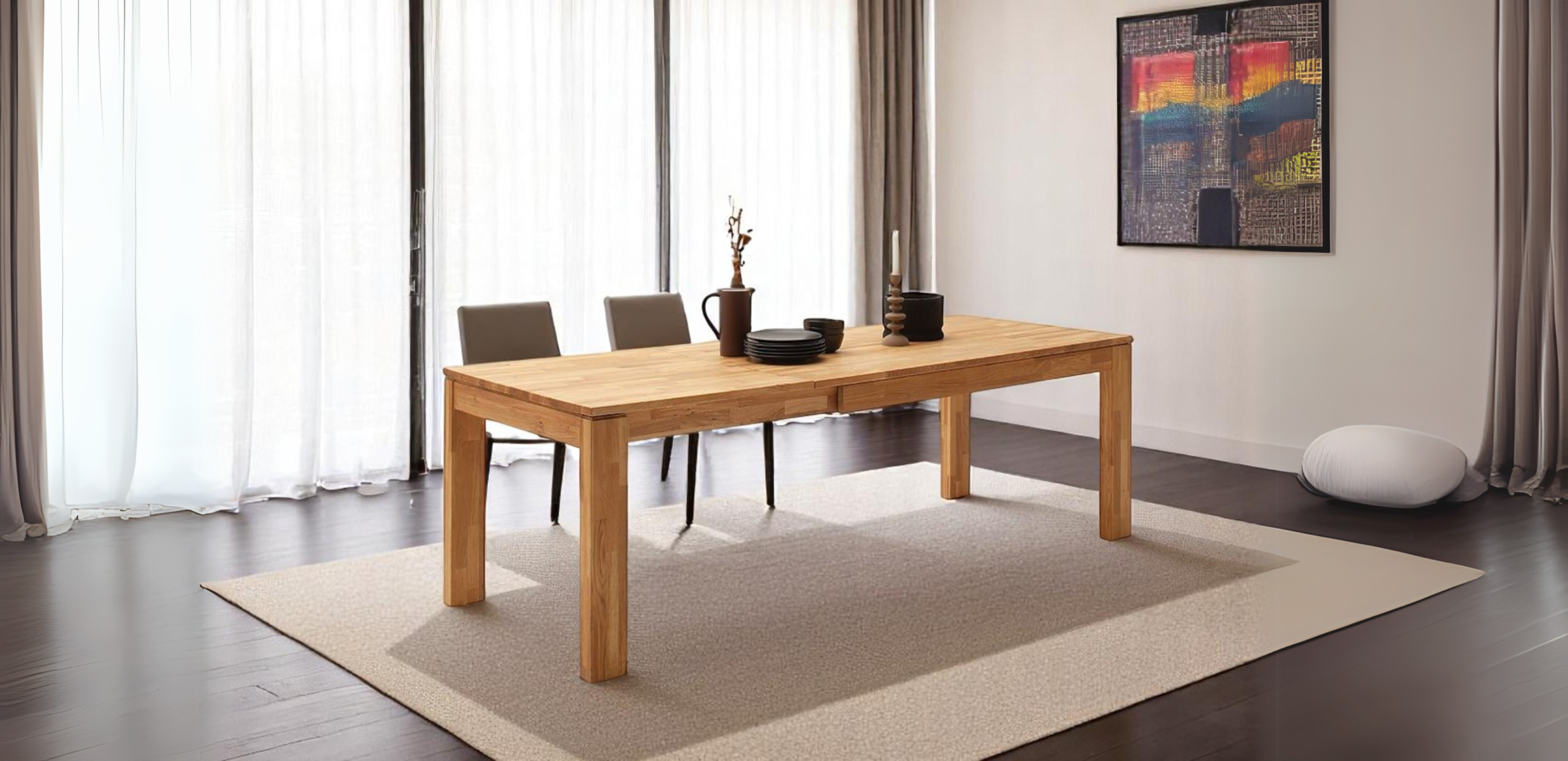 Essgruppe – 6x Stuhl Sabina Dark Grey + Esstisch Eiche Massivholz